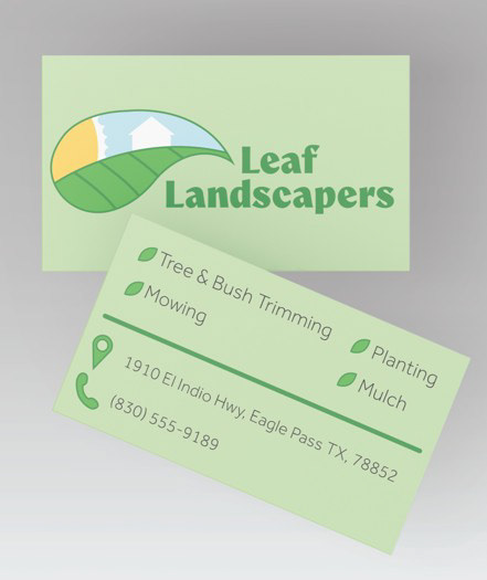 Currently working on stuff for a landscaping company called Leaf Landscapers. Right now, all I have done is their business cards, which I put into a mockup template that I found. Things are looking good so far.